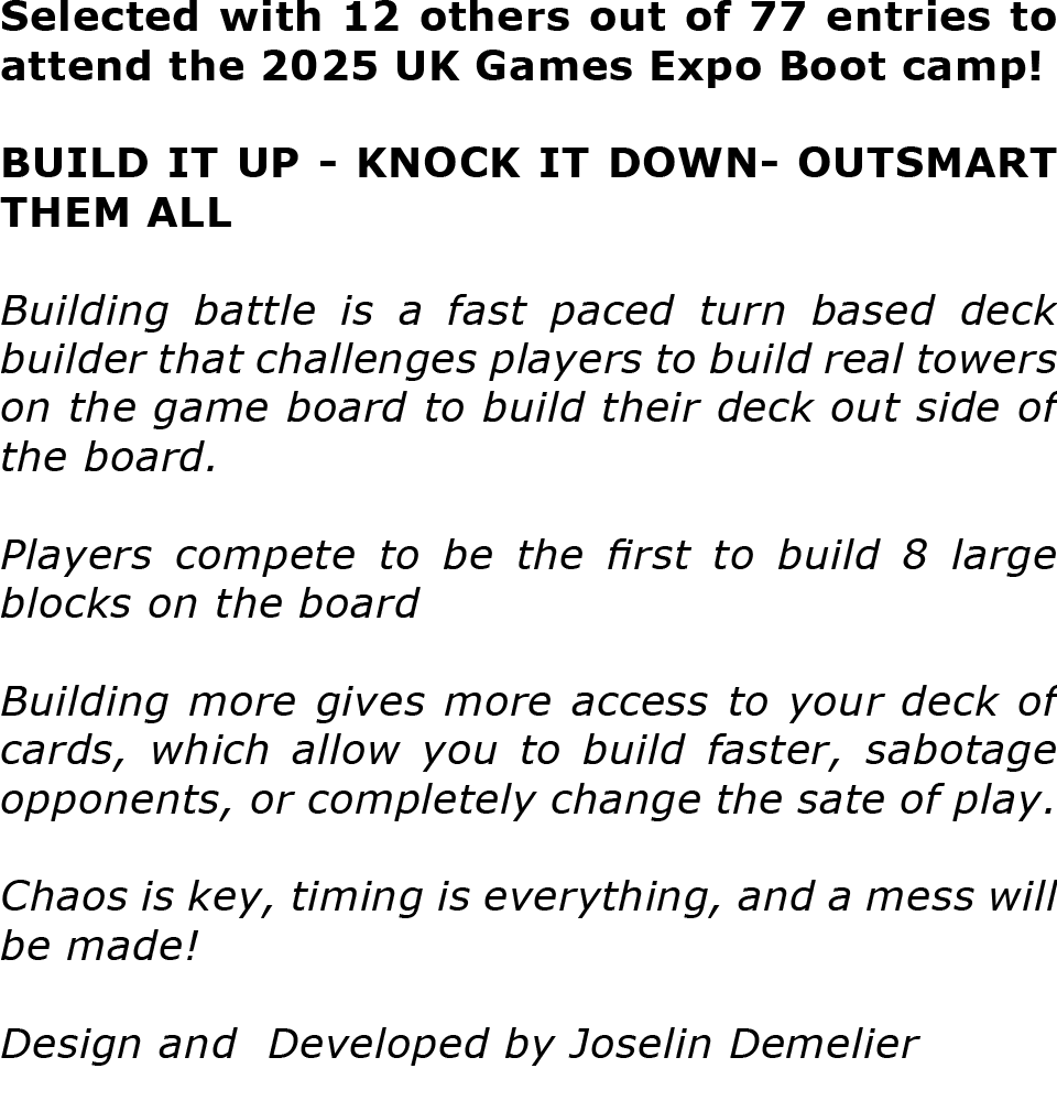 | Tags | Board Game, City Builder, Deck Building, Destruction, Game Design |